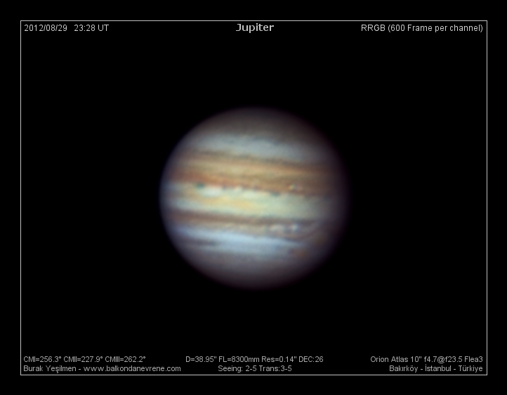 Jüpiter’ in o güzel kırmızı lekesi maalesef gezegenin ufuktan makul yüksekliklere ulaştığı anda gezegenin arkasına geçiyor. Bir süre daha katlanacağız bu duruma. Ben de bu güzel lekeyi bu yıl hiç çekmediğim için gezegen alçakta da olsa bir deneme yapmak ve Gezegen 26 derece yükseklikte fokur fokur kaynarken tarihe not düşelim istedim