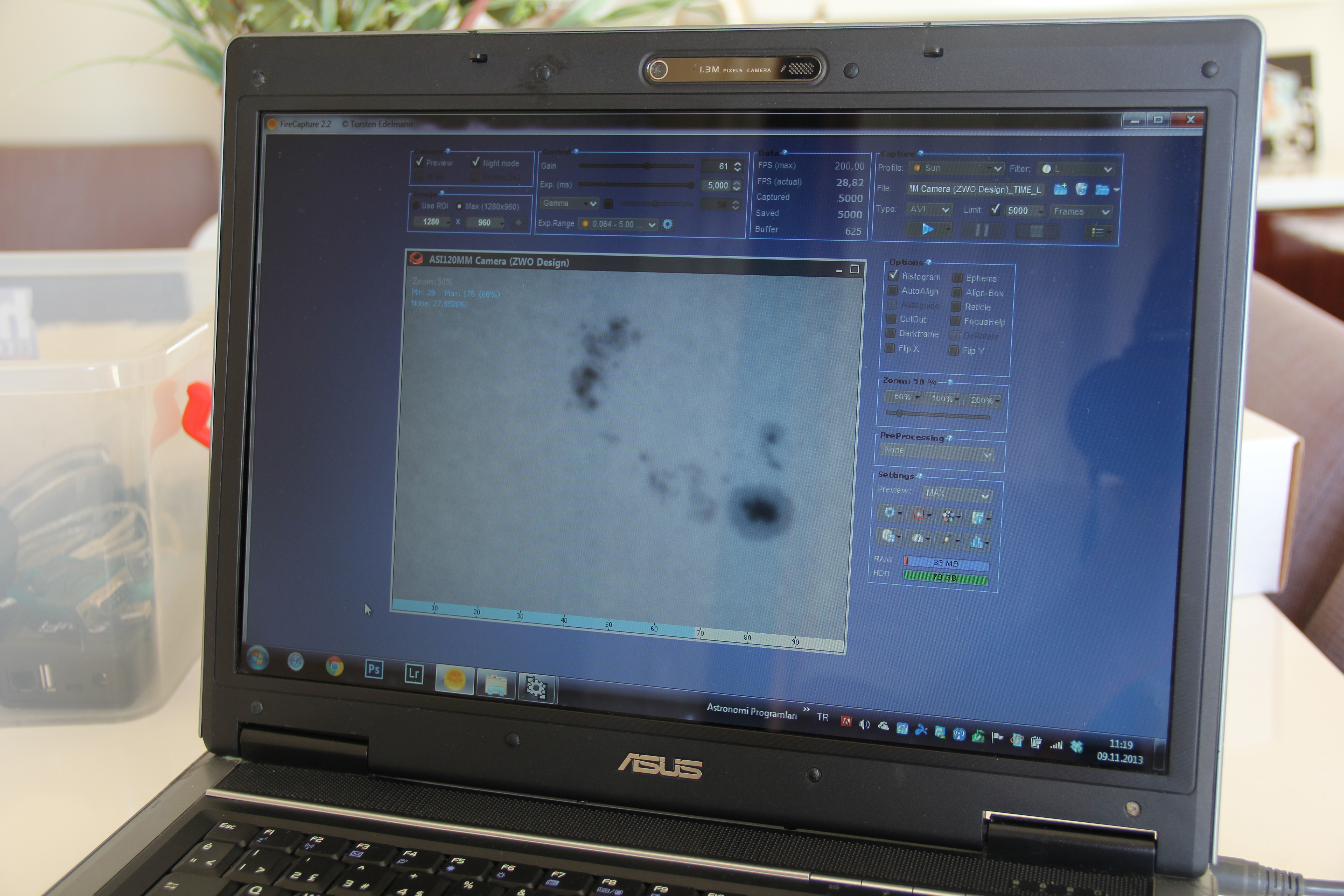 Ben de önceki gecelerde çekim yapmak için arabanın bagajına indirdiğim ekipmanlarımı havanın bu güzel durumunu görünce dayanamayıp tekrar eve, balkona taşıdım. İyi ki de taşımışım. Gerçekten çok güzel bir Güneş Lekesi çekme şansı yakaladım bu sayede.