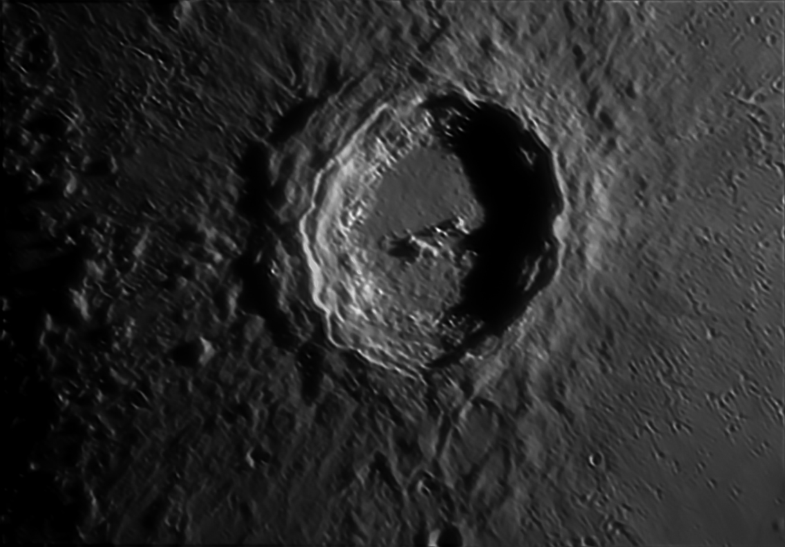Bu krater Ay’ daki diğer bir çok krater gibi bir meteor çarpması sonucu oluşmuştur. Böyle büyük çarpışmalarda kayaların da sıvı gibi davrandığı tespit edilmiştir. Bir su birikintisine küçük bir taş attığımızda nasıl taş suya girdikten sonra yukarı doğru bir miktar su sıçrıyorsa işte bu kraterin ortasında kalan küçük tepeler de aynen bu şekilde oluşmuştur. Meteorun korkunç büyüklükteki kütlesi, basınç ve ısı birleşince Ay yüzeyi tabiri caizse sıvılaşmıştır…