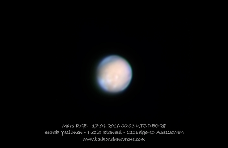 Nisan ayında çekmiş olduğum Satürn ve Mars gezegenlerine ait 2 çalışmayı paylaşmak isterim. Özellikle Mars ve Dünyamız şu günlerde çok yakın konumdalar. Böyle dönemlerde mutlaka fotoğraf çekimi ya da gözlem yapılmalı.